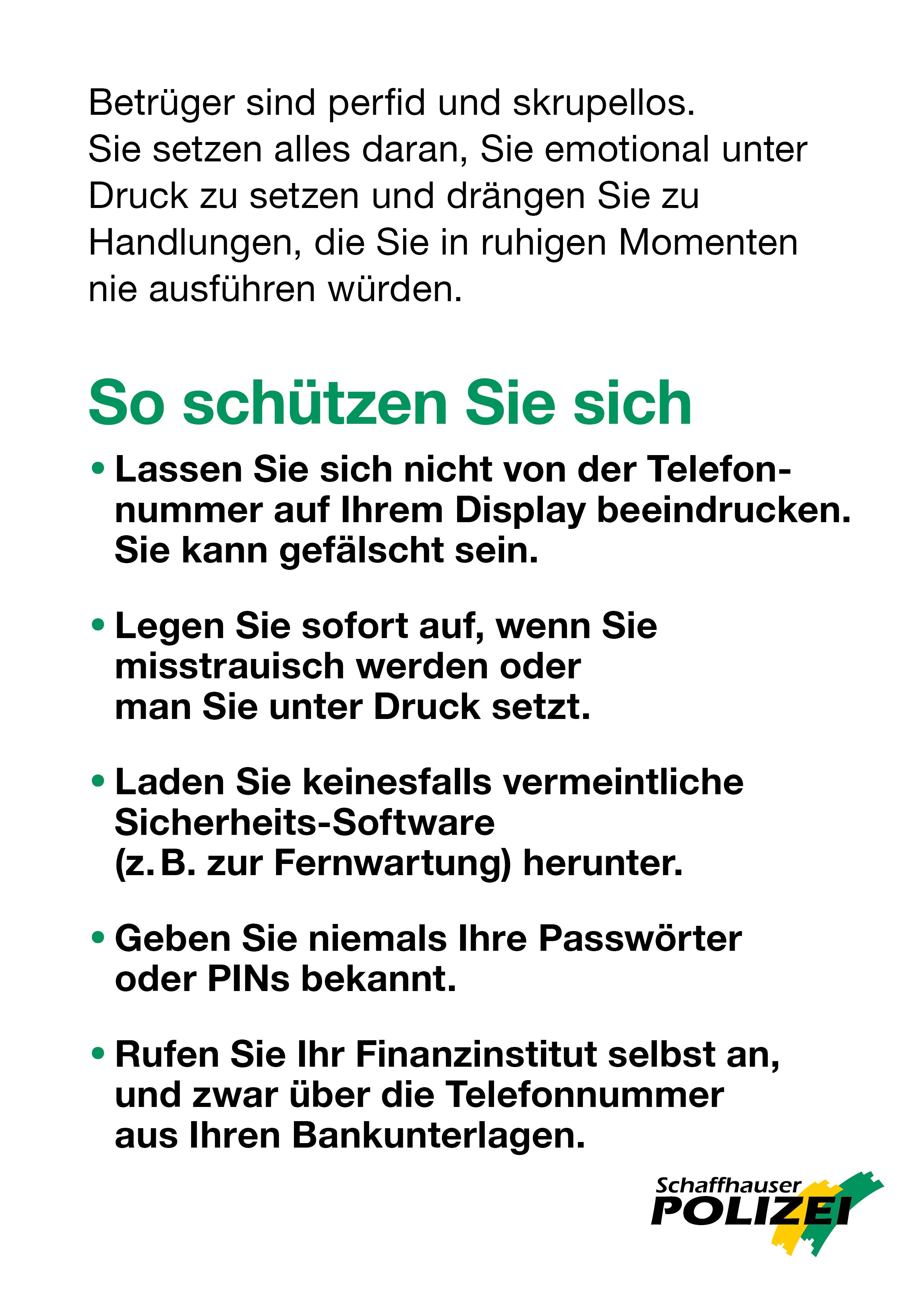 Meldung Polizei Schaffhausen - Telefonbetrug